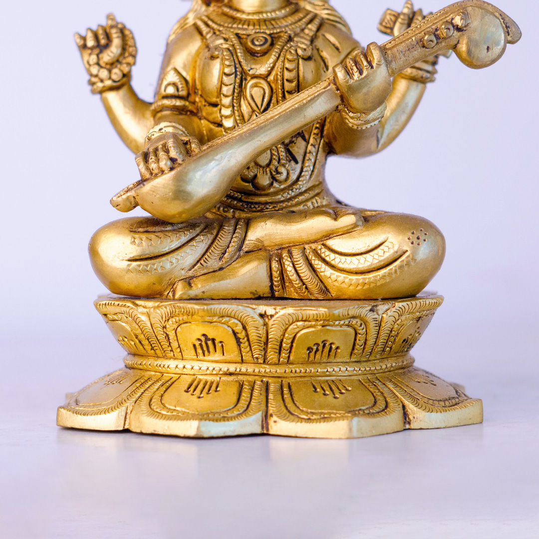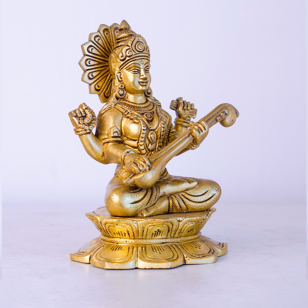 The lotus pedestal symbolizes purity and divine awakening, making this idol a spiritually uplifting presence in any space. Place it in your study area, music room, work desk, home temple, or meditation corner to inspire focus, creativity, and inner harmony.
